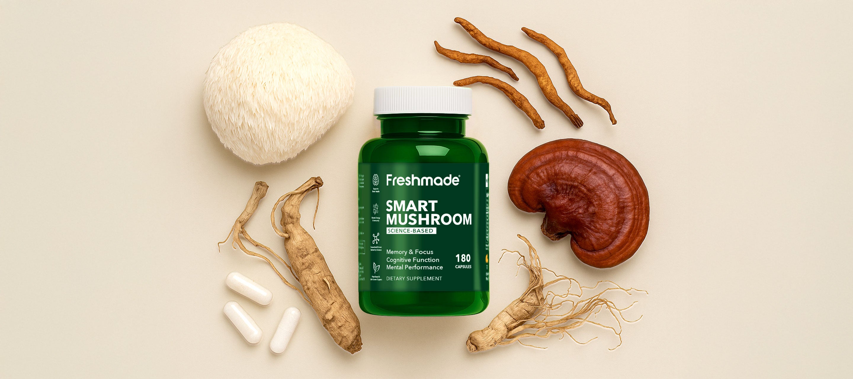 At Freshmade, we believe better health starts with better ingredients and higher standards. Unlike many mushroom supplements that offer the bare minimum, we went further. We added premium American-grown Ginseng to elevate the formula, delivering clean, steady energy without caffeine or crashes.
